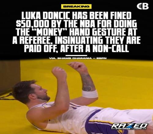 這一舉動最初并沒有被場上的裁判注意到,賽后聯(lián)盟追加了對東契奇的處罰,罰款5萬美元!