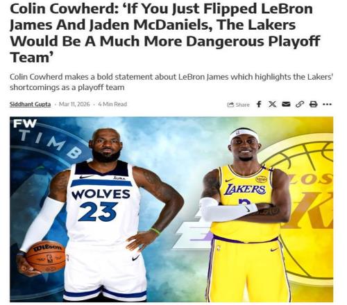 詹姆斯缺陣期間,湖人隊的進攻效率有所提升,防守執(zhí)行力也有所提高。在湖人120-106大勝森林狼的比賽后,NBA名嘴科林·考赫德公開表示,如果湖人隊用杰登·麥克丹尼爾斯代替勒布朗·詹姆斯,湖人更有奪冠威脅性?,F(xiàn)在詹姆斯在湖人的價值甚至不足以與一位角色球員媲美……