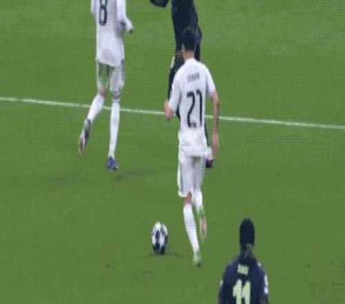 第20分鐘,庫爾圖瓦長(zhǎng)傳落點(diǎn)精準(zhǔn),巴爾韋德一個(gè)動(dòng)作,就停球+擺脫了奧萊利,多納魯馬出擊,巴爾韋德人球分過,將球打進(jìn)空門。