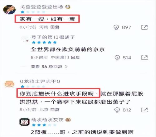 賽后,某籃球論壇上,球迷忍不住紛紛吐槽:“家有一嫂,如有一寶”、“你到底擅長(zhǎng)什么進(jìn)攻手段啊,就在那撅著屁股拱拱拱,一個(gè)賽季下來(lái)屁股都磨出繭子了”、“這就是全明星?”.....