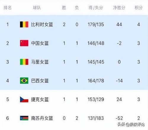 本場比賽過后,中國女籃,目前1勝1負凈勝分-2分,小組積3分,排在A組第2位。