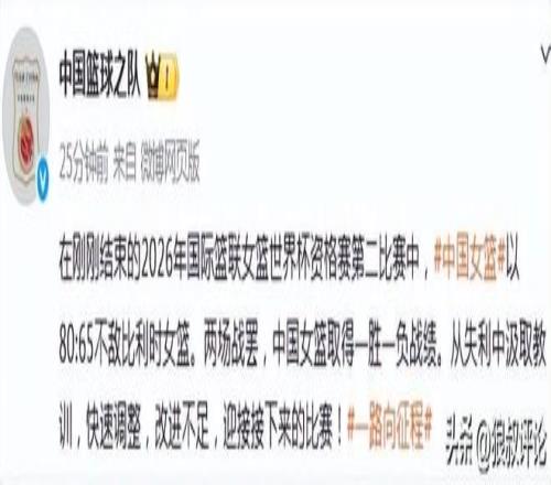 北京時間3月12日,女籃世預(yù)賽,中國女籃65-80不敵比利時女籃,戰(zhàn)績?yōu)?勝1負。