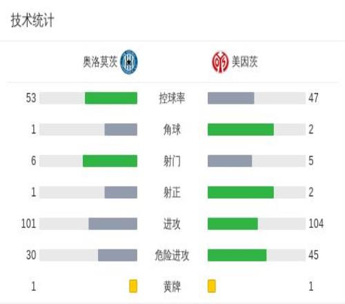 奧洛莫茨00美因茨,雙方破門乏術(shù)
