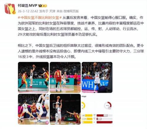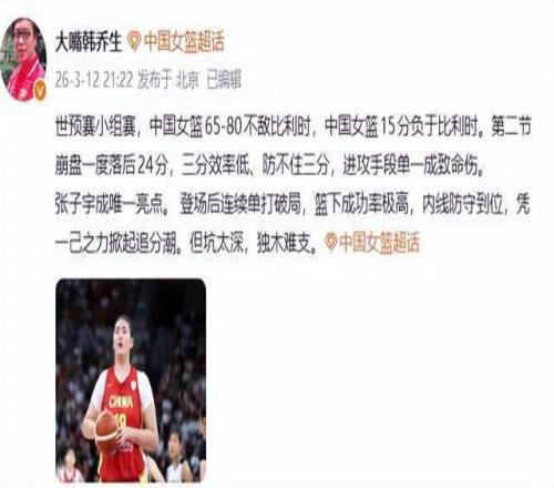 女籃慘敗比利時,韓喬生一針見血,付政浩說破癥結,廣東記者戳心