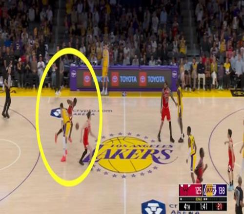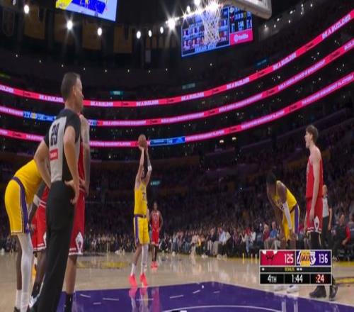 常規(guī)賽,湖人主場(chǎng)142-130戰(zhàn)勝公牛。