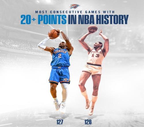 SGA在談到打破這項(xiàng)紀(jì)錄時(shí)卻顯得異常淡定,他表示:我打球過(guò)程中不看數(shù)據(jù),聽(tīng)到球迷歡呼才知道自己破紀(jì)錄了,我每年都在豐富技能包,這一切都是為了上場(chǎng)贏得比賽,如果贏不了球,我取得的任何成就都毫無(wú)意義。SGA絕不是說(shuō)說(shuō)而已,他確實(shí)是這么做的。據(jù)NBA官網(wǎng)數(shù)據(jù)統(tǒng)計(jì),這127場(chǎng)20+比賽期間,雷霆隊(duì)?wèi)?zhàn)績(jī)?yōu)?03勝24負(fù),勝率高達(dá)81.1%,SGA總正負(fù)值高達(dá)1463,場(chǎng)均正負(fù)值達(dá)到+11.52。