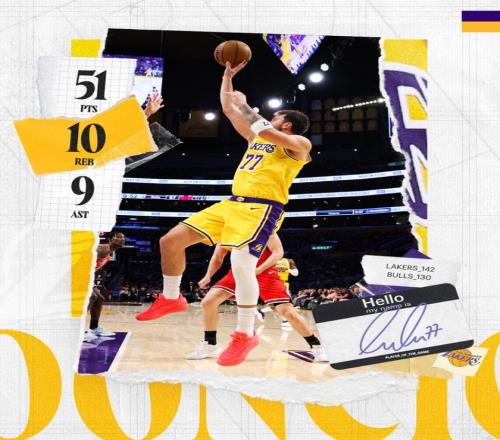 北京時間3月13日,湖人以142-130大勝公牛拿到四連勝,此役后湖人的西部排名升到第三的位置。這場比賽是盧卡-東契奇之夜,他拿到51分10籃板9助攻的準(zhǔn)三雙數(shù)據(jù),只差1個助攻就完成50+三雙的超級數(shù)據(jù)。