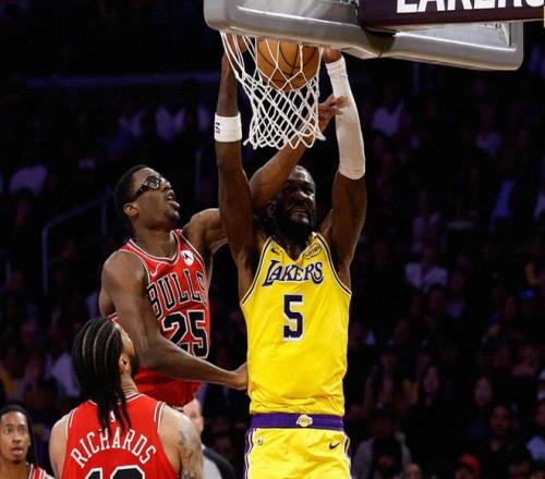 老詹沖擊暴扣,隨后搶斷助東契奇轟三分。里夫斯和東契奇輪流上籃打進(jìn),八村塁也續(xù)上三分球,湖人拉開兩位數(shù)分差。中段詹姆斯躲閃拉開上籃+搶斷反擊喂餅里夫斯,東契奇+里夫斯連中三分,詹姆斯反擊重扣,湖人最多領(lǐng)先22分!但從后半段起,湖人攻防轉(zhuǎn)換太慢,內(nèi)線頂不住沖擊,對(duì)公牛持球人壓迫不夠,被公牛連續(xù)追分,全靠東契奇撐著。三節(jié)打完,湖人108-98領(lǐng)先。決戰(zhàn)第四節(jié),肯納德關(guān)鍵三分命中后,基迪聯(lián)合特雷瓊斯一路追到只差7分。里夫斯又中超遠(yuǎn)三分球穩(wěn)定節(jié)奏,此后里夫斯拜佛跳投再中。