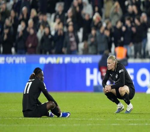 終場(chǎng)哨響,曼城球員像被抽干了力氣,癱倒、蜷縮在草皮上,滿臉絕望。