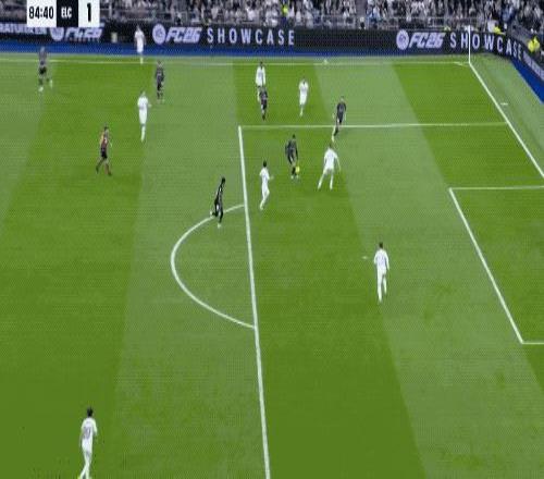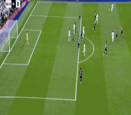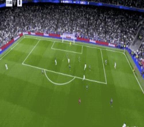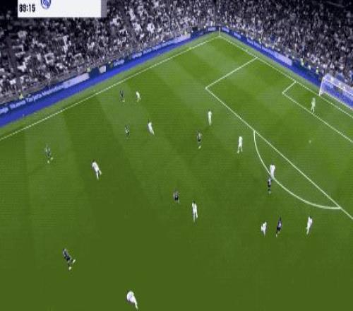 第90分鐘,剛剛替補登場的居萊爾在本方半場得球,看到門將站位靠前,他毫不猶豫直接起腳吊射。皮球從半場飛越門將頭頂直入球網(wǎng),皇馬4-1,伯納烏瞬間陷入瘋狂,這粒進球甚至讓人想起當年貝克漢姆的經(jīng)典遠距離吊射。
