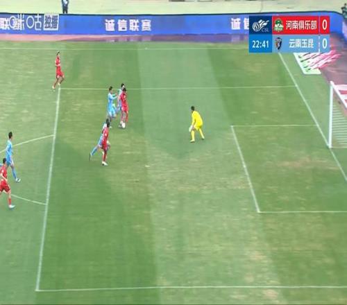 第29分鐘,姆布拉第3個單刀!云南后場傳球失誤被古斯塔沃?jǐn)嘞?,古斯塔沃順勢傳給左路插上的姆布拉,姆布拉單刀守門員小門得手,河南1-0。