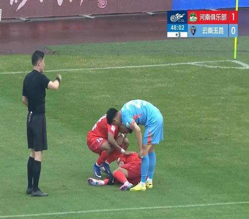 第49分鐘,古斯塔沃妙傳姆布拉,姆布拉單刀情況下與鮑亞雄身體接觸后在對方禁區(qū)摔倒,姆布拉表達(dá)抗議,但主裁判沈寅豪并未理睬。對方旋即反擊中將球打進(jìn),河南隊長王上源等多名球員提出質(zhì)疑,奈何VAR只給出云南此次反擊是否越位的鏡頭,對此前姆布拉在對方禁區(qū)倒地并未給出清晰鏡頭和解釋,姆布拉是否被犯規(guī)成了疑云。
