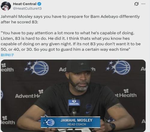 魔術(shù)主帥莫斯利賽后接受采訪時(shí)說道:“阿德巴約任何一晚都可能爆發(fā)!就算不是83分,你也不想讓他拿50分、40分或者30分。所以,我們每次都必須用特定的方式去防守他?!卑⒌掳图s賽后對(duì)裁判不滿:“他們的吹罰改變了比賽走勢(shì)?!?/p>