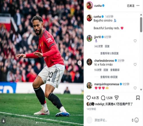 本場比賽庫尼亞打進(jìn)精彩進(jìn)球,賽后他也在個(gè)人社媒曬出本場進(jìn)球后沖浪慶祝動(dòng)作照片,配文寫道:“美好的周日,紅魔球迷們!”