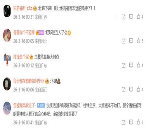 不過(guò)在輸球之后,杜鋒已經(jīng)遭遇眾怒了。特別是官方在發(fā)布比賽結(jié)果之后,可以看到評(píng)論區(qū)全部都是謾罵杜鋒的,紛紛希望他下課,在最近兩場(chǎng)比賽已經(jīng)連續(xù)出現(xiàn)了,確實(shí)他現(xiàn)在的執(zhí)教一塌糊涂。