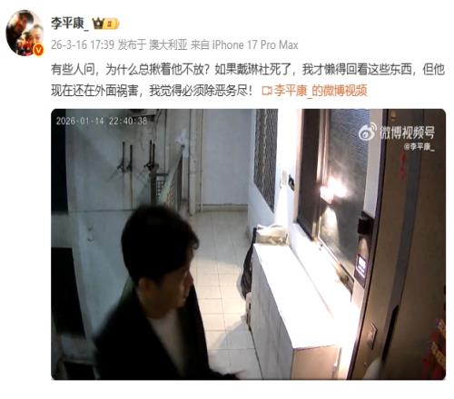 李平康曬戴琳砸門視頻:如果戴琳社死了,我才懶得回看這些東西