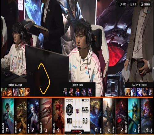 BLG:上單Bin、打野Xun、中單knight、下路Viper、輔助ON