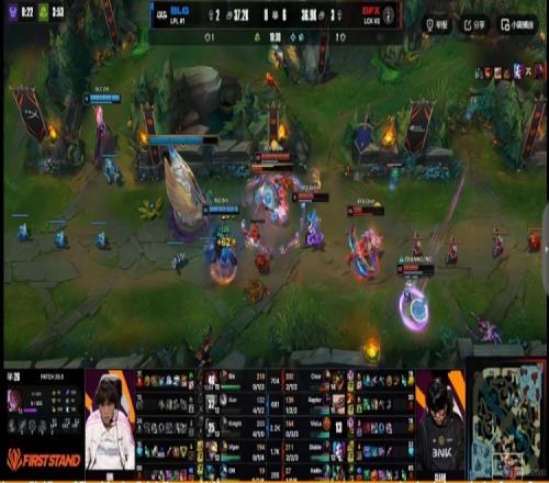 【14:20】下路BLG上野雙大招強(qiáng)殺VicLa安妮,隨后BFX上路越塔強(qiáng)殺ON娜美,但是knight阿蘿拉TP支援,Bin塞恩也TP支援到位,多打少的BLG卡位留住了對手的上野兩人!knight阿蘿拉雙殺!BLG順勢拿下峽谷先鋒!雙方經(jīng)濟(jì)差2500!