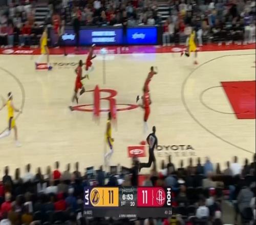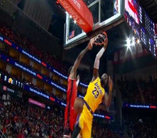 小里長傳詹姆斯快攻接球雙手炸扣隨后怒瞪小賈巴里!