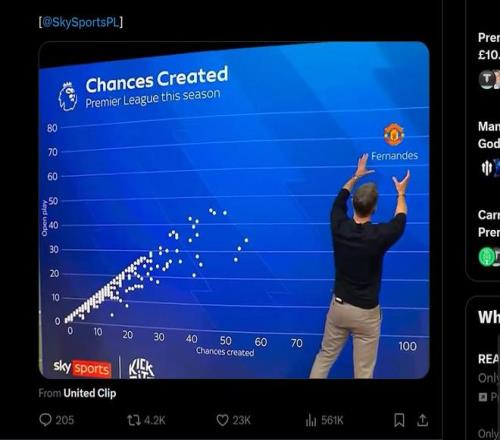 賽后主持人曬出布魯諾-費爾南德斯本賽季英超創(chuàng)造機會的數(shù)據(jù),一旁的亨利和卡拉格都笑出了聲。