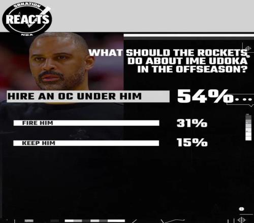美媒《sbnation》發(fā)布的火箭球迷投票中也直觀展現(xiàn)出這一點,有54%的人認為火箭需要為烏度卡增加一名進攻助教,也有31%認為應該直接解雇烏度卡。
