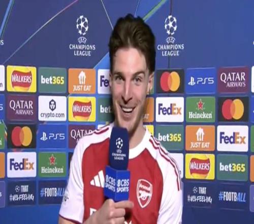 在歐冠1/8決賽淘汰勒沃庫森后,阿森納中場賴斯接受了CBS體育的連線采訪。