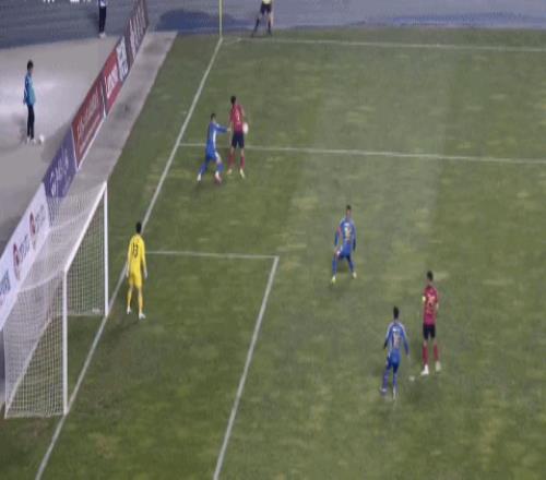 第32分鐘,李強(qiáng)禁區(qū)內(nèi)凌空抽射,皮球高出球門