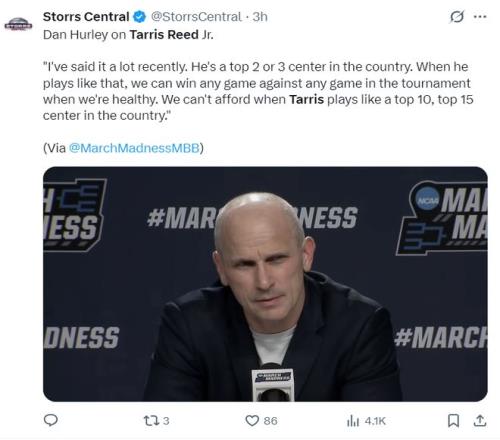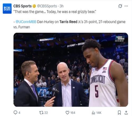 北京時(shí)間3月21日,NCAA瘋狂三月首輪,康涅狄格大學(xué)82-72擊敗弗爾曼大學(xué)。這場(chǎng)比賽康涅狄格一直手握優(yōu)勢(shì),上半場(chǎng)打完康大領(lǐng)先4分,下半場(chǎng)康大繼續(xù)拉開(kāi)差距。這場(chǎng)比賽康大三人上雙+兩人20+,弗爾曼大學(xué)也是三人上雙+兩人20+,不過(guò)康大有一個(gè)30+。