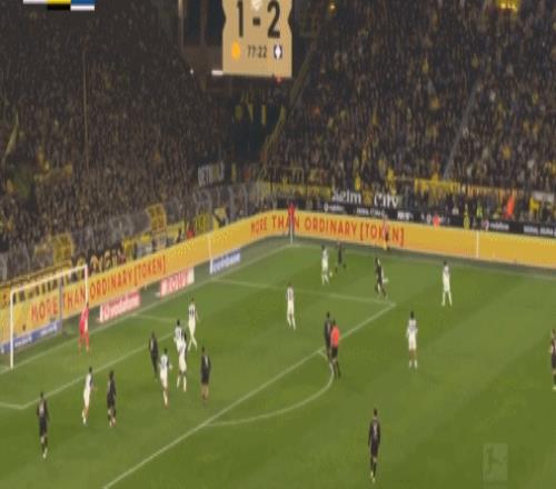 第73分鐘,拜爾再次造點,本塞拜尼罰進,多特1-2漢堡