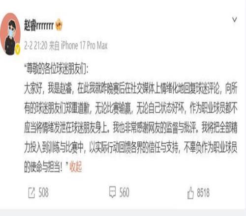 之前趙睿就曾在北京輸給青島的賽后,在評論區(qū)口不擇言,說了一些不當言論攻擊新疆球迷,從而引發(fā)了不小的風波,那件事鬧得沸沸揚揚,不少新疆當?shù)氐墓倜蕉加H自下場聲討趙睿,最終,CBA聯(lián)賽在時隔多天后對趙睿開出了“重磅”處罰,對趙睿開出了停賽3場,罰款5萬的罰單,北京首鋼俱樂部被核減聯(lián)賽經(jīng)費5萬,這件事才最后不了了之。