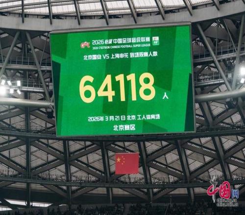 3月21日,在北京工人體育場進行的2026賽季中國足球協(xié)會超級聯(lián)賽第三輪的比賽中,北京國安隊主場1比1戰(zhàn)平上海申花隊。本場工體迎來64118名現(xiàn)場觀眾,打破了上賽季“京滬大戰(zhàn)”創(chuàng)下的62291人的新工體上座率紀(jì)錄。中國網(wǎng)記者 鄭亮攝