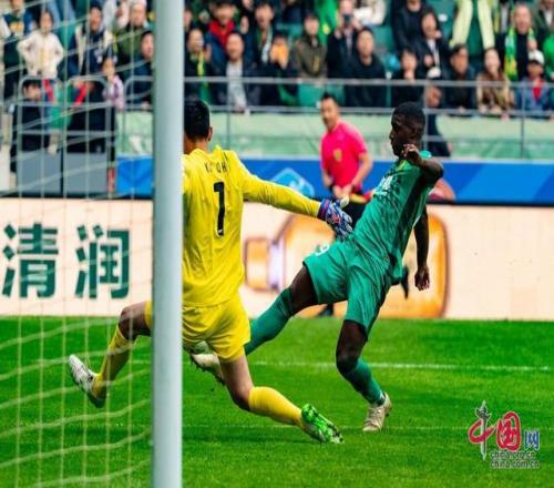 中國網(wǎng)訊(記者 鄭亮)3月21日下午,北京國安隊在2026賽季中超聯(lián)賽第三輪中主場迎戰(zhàn)上海申花隊。在64118名現(xiàn)場球迷的見證下,歷史上第69次京滬大戰(zhàn)以1比1的比分收場。國安前三輪取得1勝1平1負(fù)。比賽開始后,兩隊沒有任何試探,直接對攻。比賽第22分鐘,國安隊恩科洛洛的傳球準(zhǔn)確找到禁區(qū)內(nèi)的張玉寧,后者頭球破門。半場結(jié)束,國安1比0領(lǐng)先。