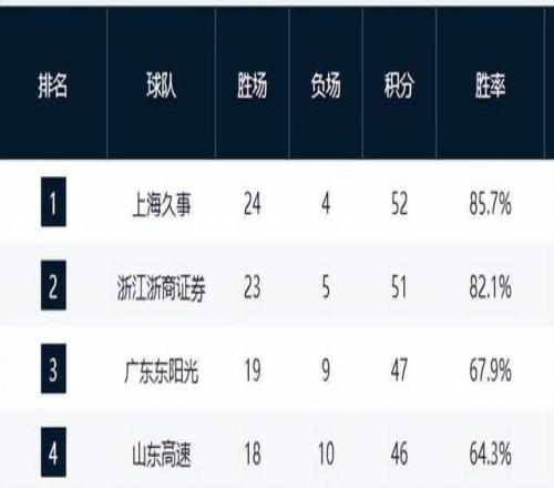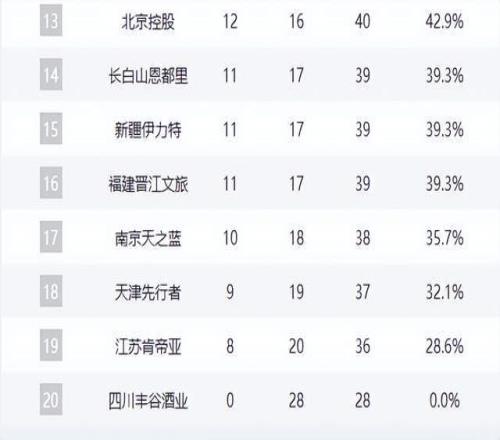 福建、同曦、天津、江蘇等隊(duì)仍在為最后一線生機(jī)拼殺,而四川隊(duì)至今未嘗勝績(jī),0勝28負(fù)墊底,賽季已無(wú)懸念。