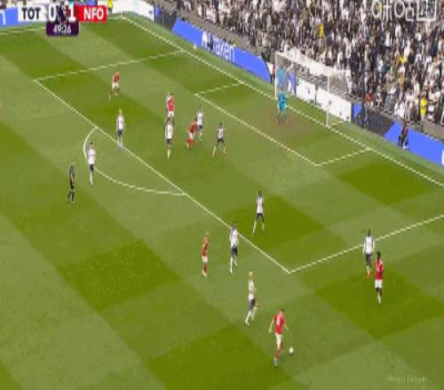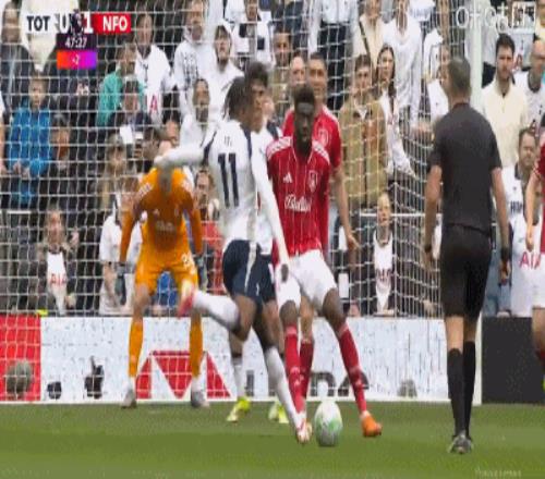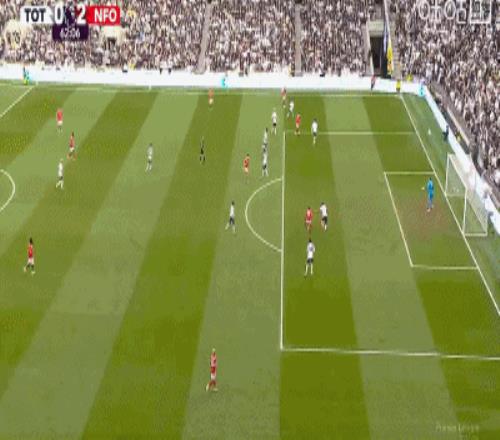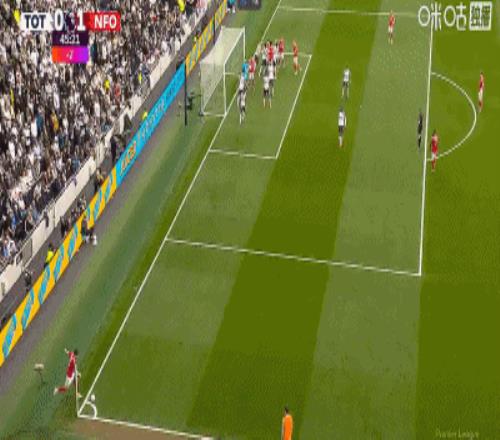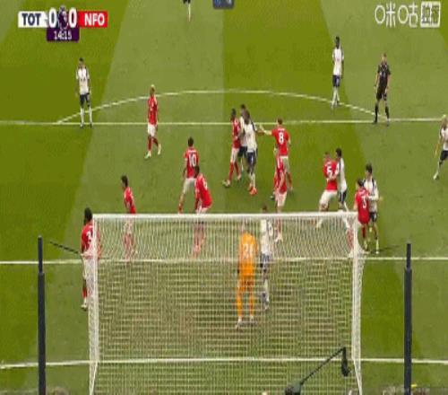 第45分鐘,伊戈?duì)?熱蘇斯角球中頭球破門,森林1-0領(lǐng)先熱刺!