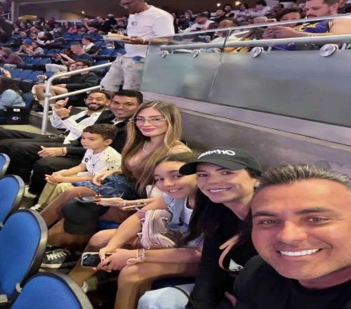 卡塞米羅和庫尼亞及其各自家人一同觀看NBA比賽