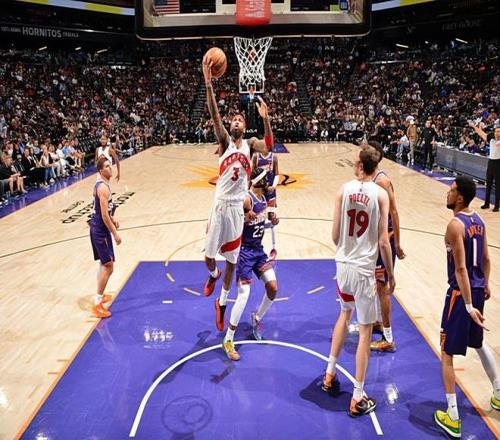 在此前的一場NBA常規(guī)賽中,主場作戰(zhàn)的菲尼克斯太陽以120比98戰(zhàn)勝了多倫多猛龍。本場比賽后,結(jié)束了5連敗的太陽的戰(zhàn)績提升到了40勝32負,繼續(xù)排名西部第7位,與身前的明尼蘇達森林狼的勝場差為4場,與身后的洛杉磯快船的勝場差為4.5場;而遭遇了兩連敗的猛龍的戰(zhàn)績則是下滑到了39勝31負,繼續(xù)排名東部第5位,與身前的克利夫蘭騎士的勝場差為4.5場,與身后的亞特蘭大老鷹的勝場差為半場。