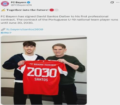 官方:拜仁宣布和新星大衛(wèi)-桑托斯-戴伯爾簽下了他的第一份職業(yè)合同,這名19歲中場(chǎng)的新合同2030年到期。