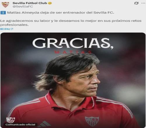官方:塞維利亞宣布解雇了主帥馬蒂亞斯-阿爾梅達(dá),他們最近剛剛在主場(chǎng)0-2輸給了瓦倫西亞。