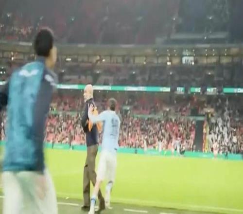 終場(chǎng)哨響后,瓜迪奧拉逐一與球員擁抱慶祝。不過謝爾基從大佬的身后跑過來(lái),興奮地推他這一下,然后就跑了。馬爾穆什也過來(lái)跟他的一起玩,瓜帥被嚇了一跳后退了一步,隨后笑著拍了拍謝爾基。