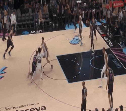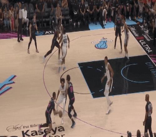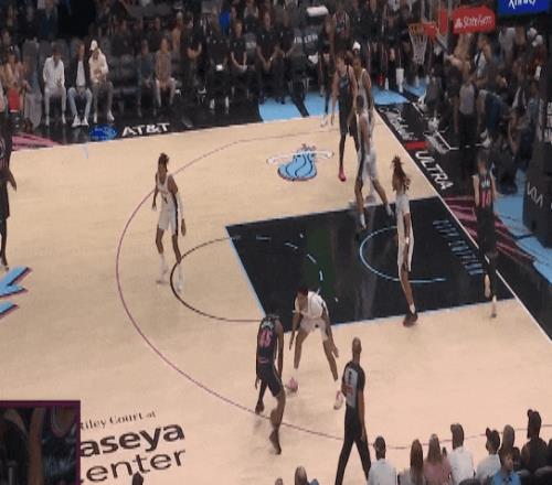 希羅沒法給阿德巴約了,只好找扣籃位的維金斯,但文班亞馬飛身殺回,維金斯高拋,被文班蓋掉。