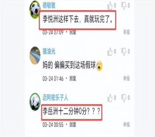 球迷對他也很失望,他們說:李悅洲這樣下去,真就玩完了。不知大家對李悅洲有何評價和建議。