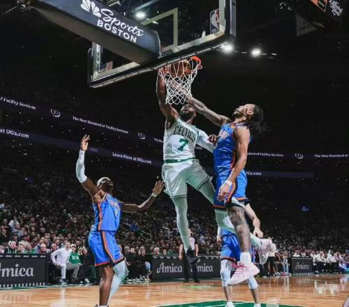 2隊的交手,很可能是總決賽的提前上演,這場對決,也因此吸引力十足!比賽一上來,雷霆就開始在外線發(fā)力,連中3記3分取得領(lǐng)先!不過很快,綠軍也找到手感,在外線頻繁投中3分,但是雷霆首節(jié)狀態(tài)太好了,多點(diǎn)開花,3分更是接連命中,球隊在首節(jié)也建立了11分領(lǐng)先!2隊在次節(jié)展開對轟,你來我往,比分交替上升!布朗投中3分,塔圖姆內(nèi)突外投連續(xù)取分,綠軍2大球星開始發(fā)力,逐漸占據(jù)了場上主動,一舉反超3分,好在雷霆及時找回狀態(tài),連砍7分走出回應(yīng),半場保持著4分領(lǐng)先!