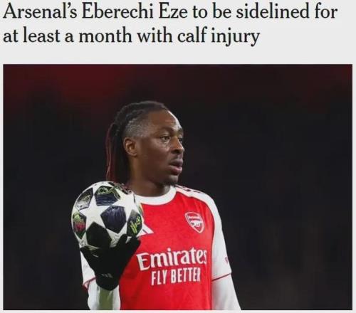 gunnerblog在TA發(fā)文表示,埃澤將因為小腿傷勢至少缺陣一個月。