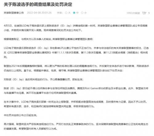 這是LPL聯(lián)盟近年來對涉嫌假賽選手的最嚴重罰單,是近年LPL第二位被全球禁賽的選手。