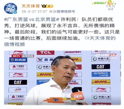 賽后許利民還殺人誅心:這場比賽隊員們都很優(yōu)秀打逆風(fēng)球,展現(xiàn)了永不言棄的精神。最后階段,我們的運氣可能更好一些。