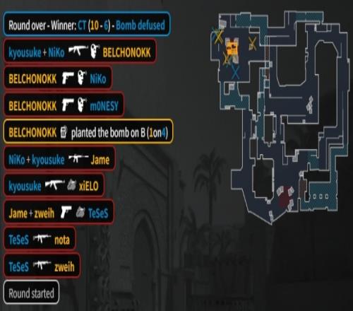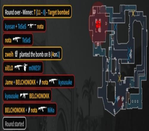 第11回合,Niko英雄AK帶隊來B直接被上帝大狙首殺,孩神撿到AK打掉xiELO后就被KK終結,Niko來到0-8,PV拿到第8分。