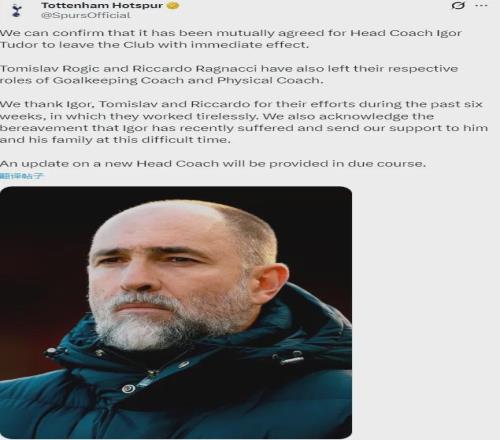 官方:熱刺宣布和圖多爾就其卸任達(dá)成了協(xié)議,即刻生效。