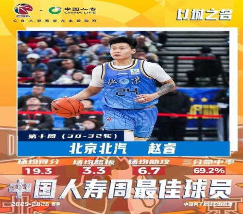 CBA官宣:趙睿時隔7年第2次獲本土周最佳廣廈塔克外援周最佳