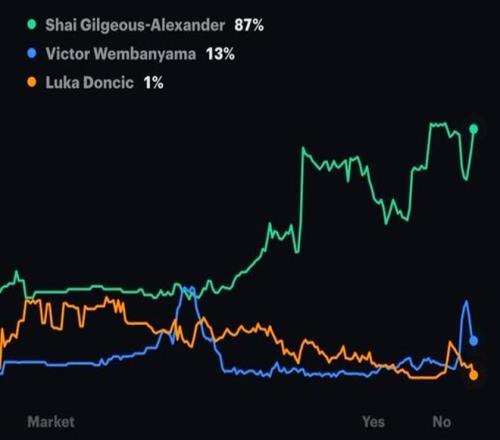 大數(shù)據(jù)也直觀展現(xiàn)這一點(diǎn),在東契奇受傷后他拿下MVP的可能性暴跌至1%,對(duì)手SGA飆升至87%。