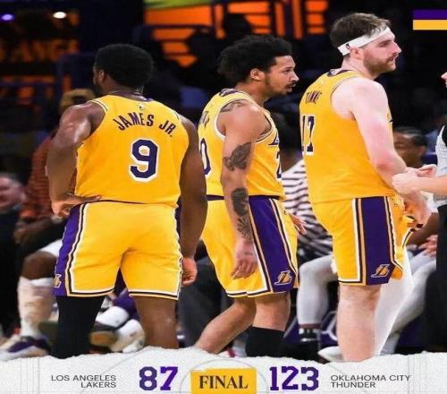 過去三場,湖人最大輸給過雷霆43分